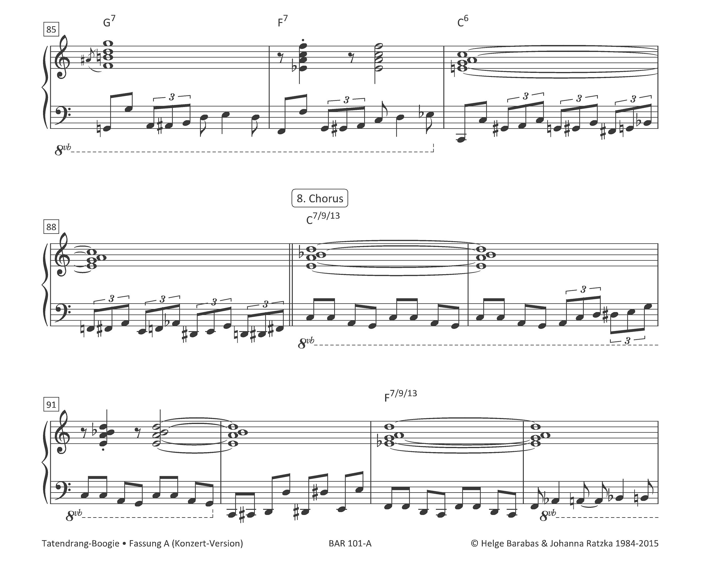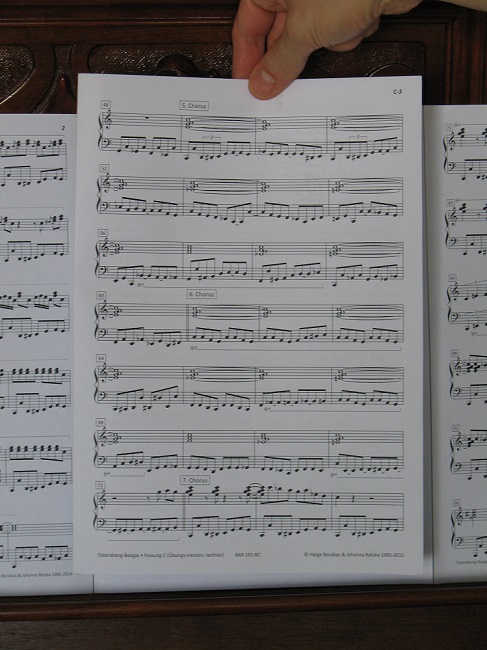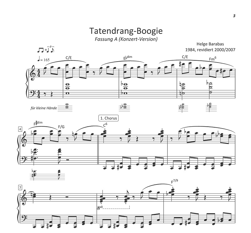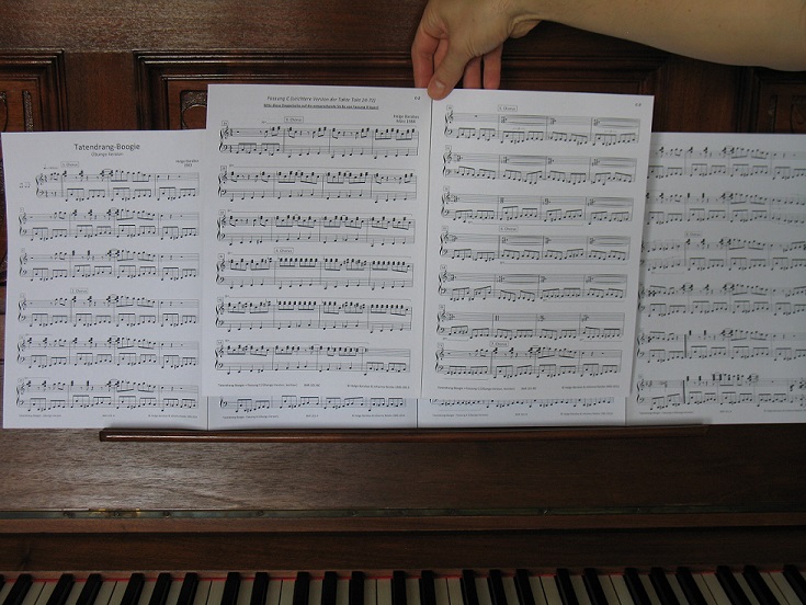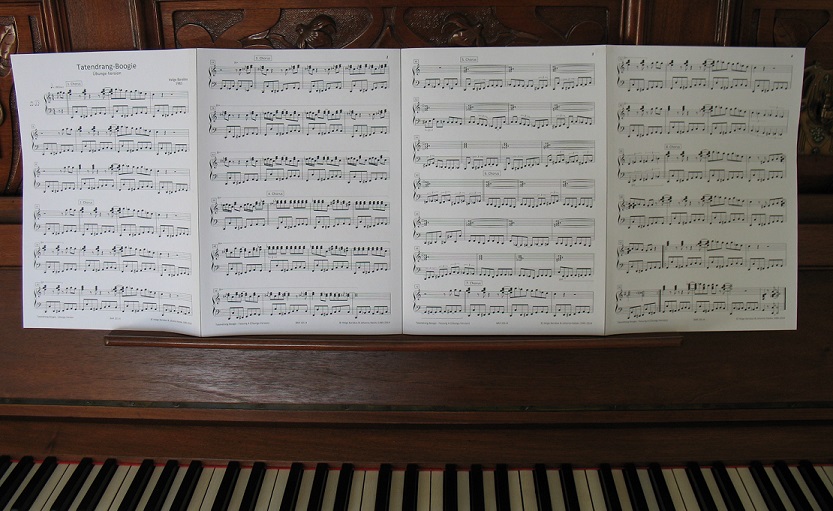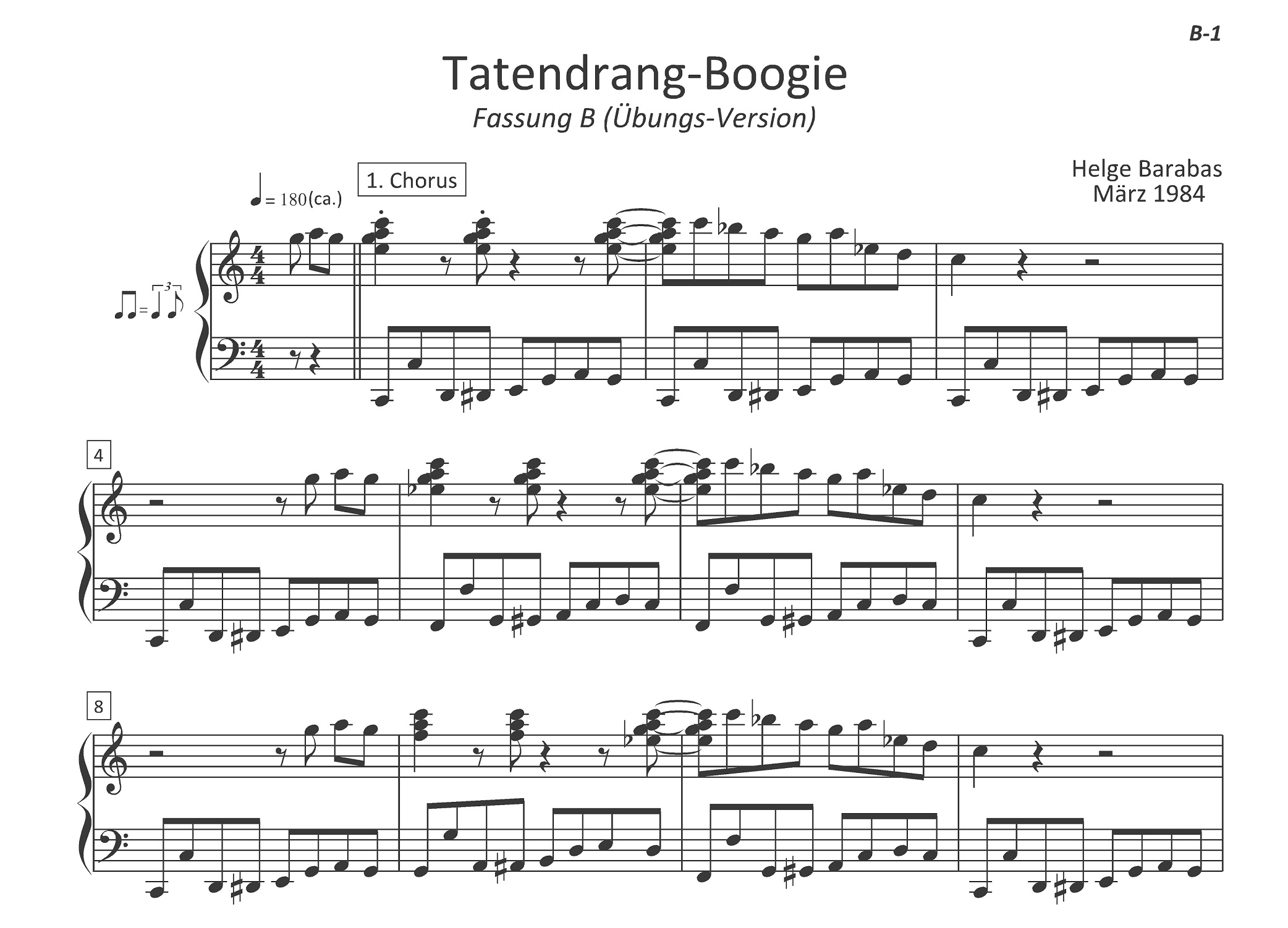 Stückes bildet das virtuose Bass-Solo in der linken Hand, eine Besonderheit, die den Tatendrang-Boogie zu einem interessanten Vortragsstück