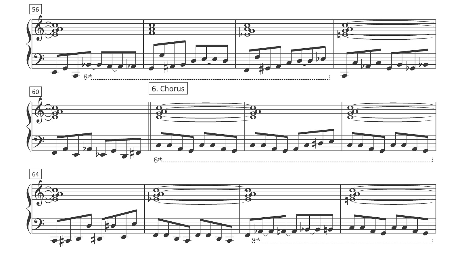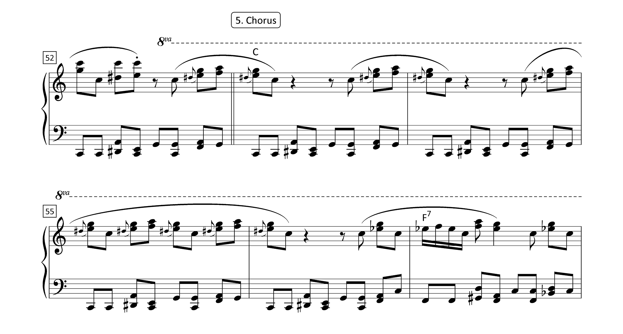 Intro mit 1. Chorus Anfang 5. Chorus (Solo r.H.) Übergang 7.-8. Chorus (Bass-Solo) | |