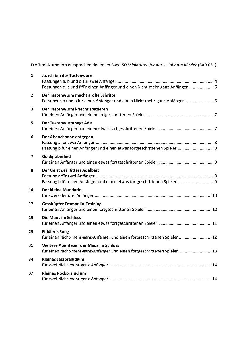 Für 14 Miniaturen insgesamt 22 Arrangements zu vier Händen, darunter sehr leichte Fassungen für zwei
